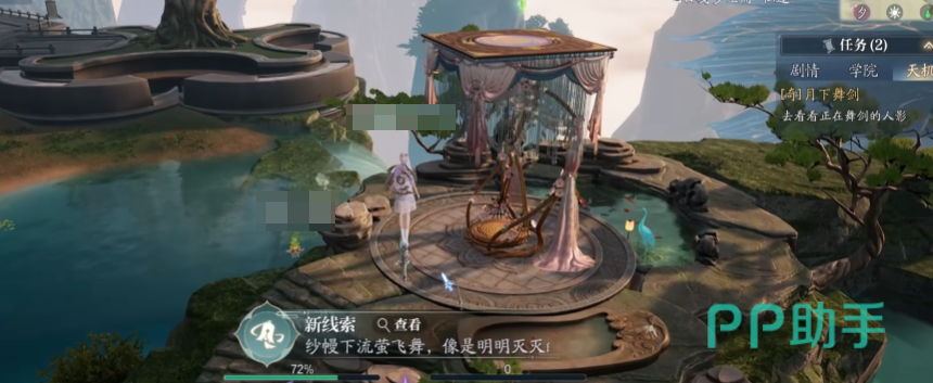 5.扑流萤:向地图右下角会武场方向移动,抵达坐标(17778,19865)附近的小凉亭,在其内部垫子上可拾取道具触发奇遇。
