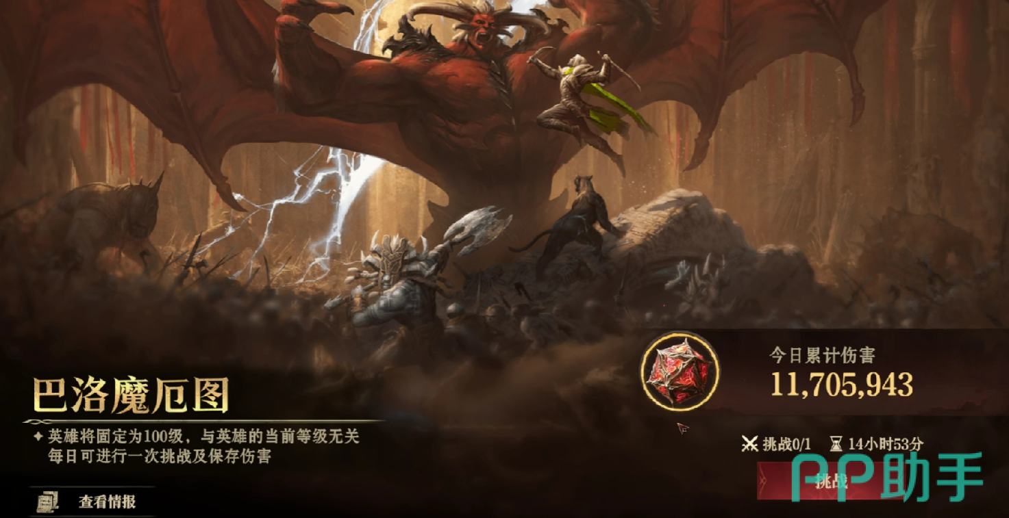 同比更新的新地图,巴洛魔厄图,属于无尽的boss挑战模式,玩家可以进入到魔物挑战赛中,每日进行一次伤害储存。