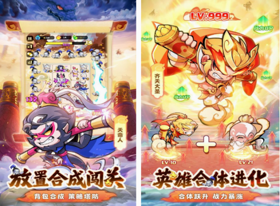 在这款拥有着大家熟悉的英雄角色游戏中,还将魔宠合成以及塔防融为一体,以三国时期很多大家熟悉的角色为主,让你在重游西游世界。无论哪个角色,都能通过放置合成闯关的方式,享受策略游戏所带来的独特魅力。还能使英雄利用不断合体进化的方式,增加战斗力。这样无论面对的是任何西游的角色,都能打败对手,还支持双人联机合作模式。
