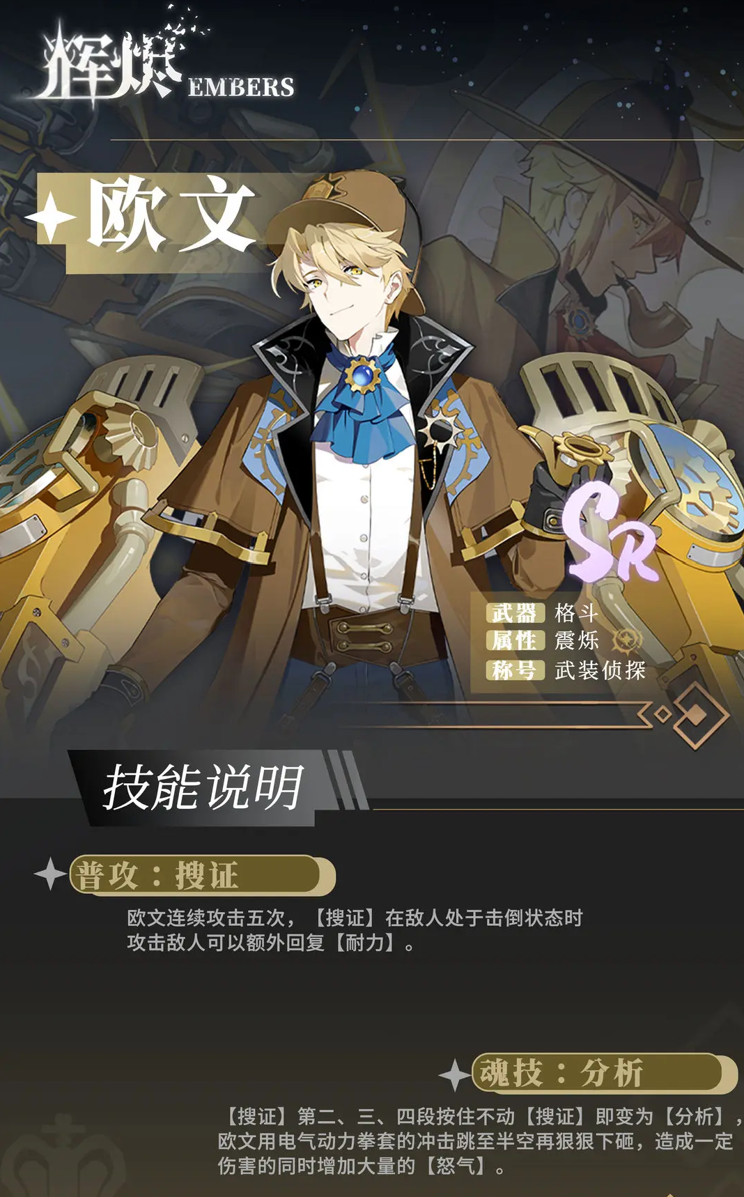 在《辉烬》构建的传火者与烬天使并肩作战的侵蚀大陆世界观中,欧文作为可操作角色之一,凭借其独特的战斗机制和稳定的实战表现,吸引了大量玩家关注。本文将围绕该角色的核心能力展开解析,帮助大家更深入地理解这位被誉为“武装侦探”的格斗系英雄。