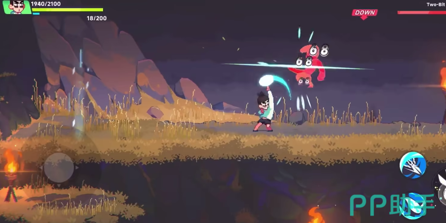 游戏战斗模式实际上是比较复杂的,玩家不仅要操控角色的跳跃以及移动方向,还需要判定敌人的操作模式,并且针对敌人的攻击进行分析。
