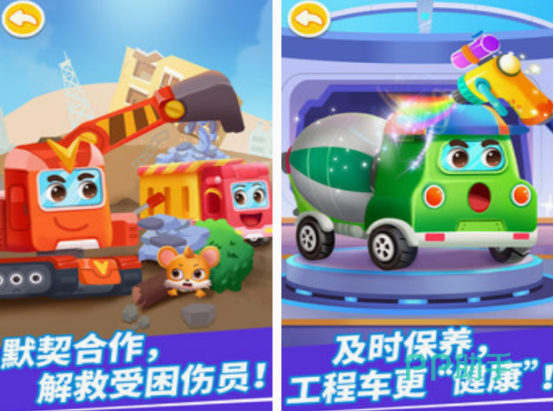 这款同样是适合孩子的工程车游戏,更是由宝宝巴士所推出的,里面有工程车的队伍,在修建各种建筑物的时候,需要使用这些车子来解决问题。无论是你想要在游戏中挖游泳池,或者是建造火车站等,大家都需要使用正确的工程车辆。儿童在玩的时候,由于采用的是卡通的风格进行设计,也会非常感兴趣,知道搅拌车、挖掘机等车子的作用是什么。