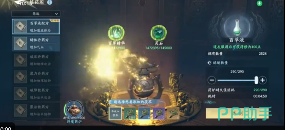 《遮天世界》将丹药划分为三大功能类别:养成型、增益型与辅助型。其中,养成类丹药直接关联角色等级成长路径,当前开放的可用丹方包括百草液、益神散、离伤丹与定魄丹。百草液为常规等级提升主力丹药,支持玩家通过炼药阁自主炼制,亦可通过荒塔PVE副本稳定获取;益神散与离伤丹专用于缩短境界突破失败后产生的负面状态持续时间,需玩家集齐对应丹方与药草后方可炼制;定魄丹则聚焦于提升破镜成功率,是冲击高阶境界时不可或缺的战略资源。