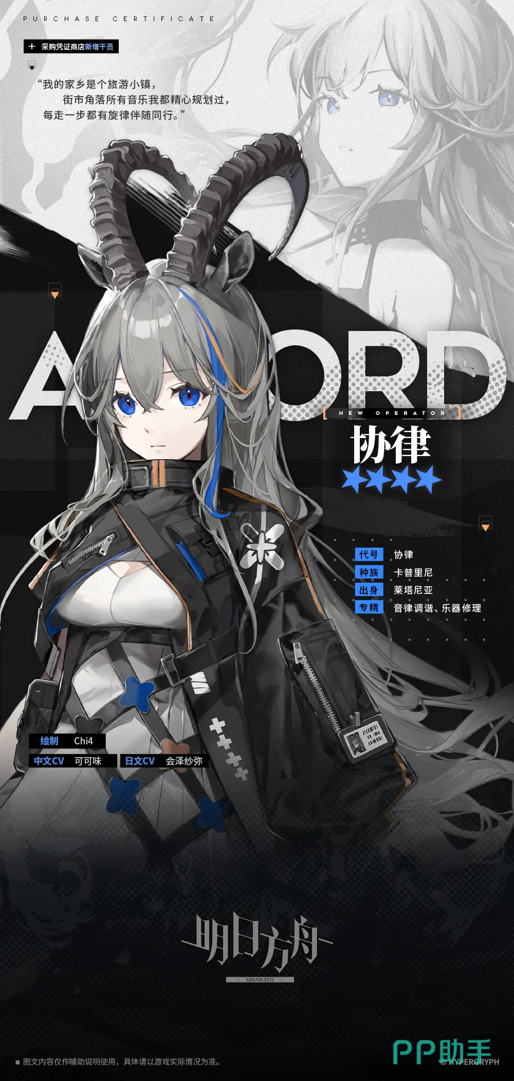 明日方舟协律强度如何?协律是游戏中新加入的一名四星术师干员,角色外观设计兼具温柔与呆萌气质,头顶独特的羊角造型极具辨识度,尽管星级为四星,但其立绘表现力和人物设定都颇具吸引力。作为法术输出型干员,她在实战中的表现也引发了不少玩家的关注。下面将从技能机制、天赋效果以及实战定位等方面进行全面解析。