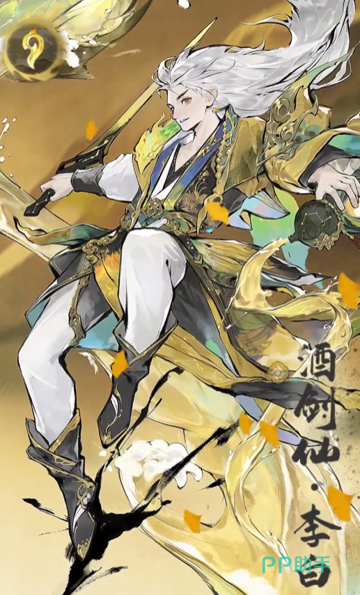 区别于传统武将设定,该角色原型虽源自盛唐诗人李白,但世界观重构后设定为“以诗入道”的初代诗神。其形象设计突破年龄刻板印象——银发束冠、身形挺拔,服饰采用玄色底纹配金线云龙刺绣,肩袖盘绕黄龙图腾,整体视觉凸显上古仙尊的威仪与超然气度。白发并非衰朽之征,而是千年道行凝练的外显特征。
