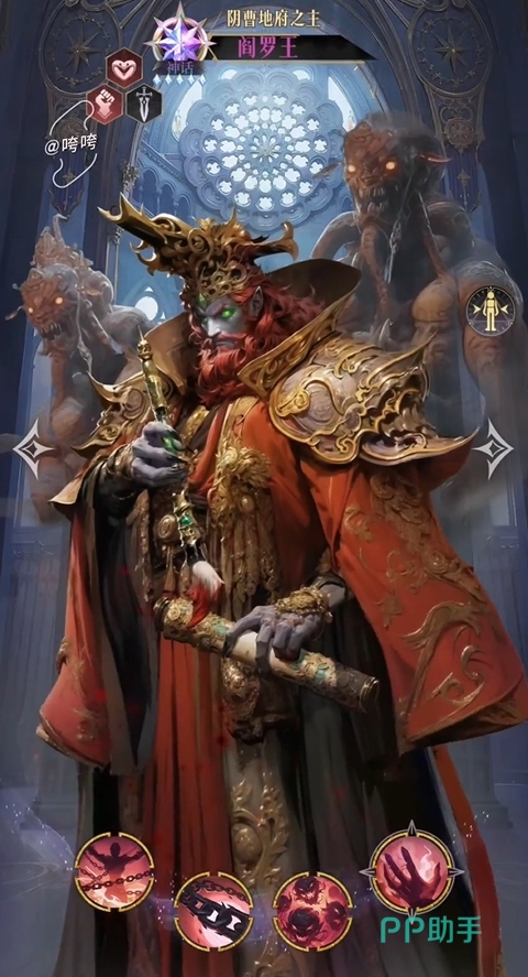 很需要在实战中利用站位来触发开局机制的一名角色,能在开场后立刻将对位的角色拉过来并强控住他,能无视除无法选中外的一切解控手段,让阎罗王成为了不朽箴言里最好用的单体控制之一。敌人在攻击阎罗王时,还会因他的能力而损失掉能量,开启大招的速度也会因此变慢。