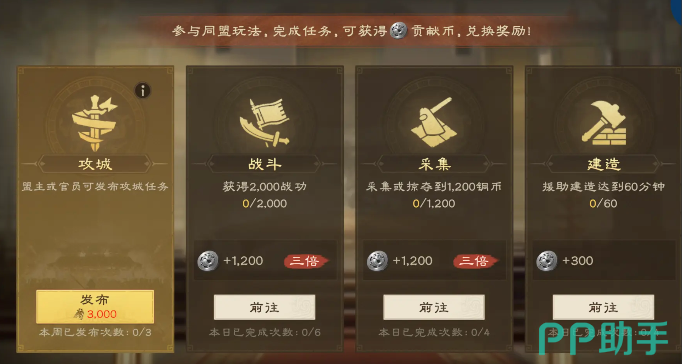 除了长期推进的征程任务外,每周刷新的同盟周任务也极为重要,尤其是限时攻城目标,需要全盟协同作战,在规定时间内成功夺取指定城池。成功占领后不仅能获得大量资源,还能赢得贡献币,用于后续兑换关键道具。