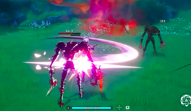 第二技能是无名技能,在成功释放后,角色可以在空中挥舞双刀,并完成猛烈爆砍,在接触到敌人的一瞬就可以引发大范围内的爆炸,非常适合在群体作战时使用的一个技能,不过需要注意该技能适合刷低级敌人,通过累积可以触发更强的输出能力。