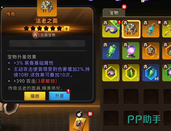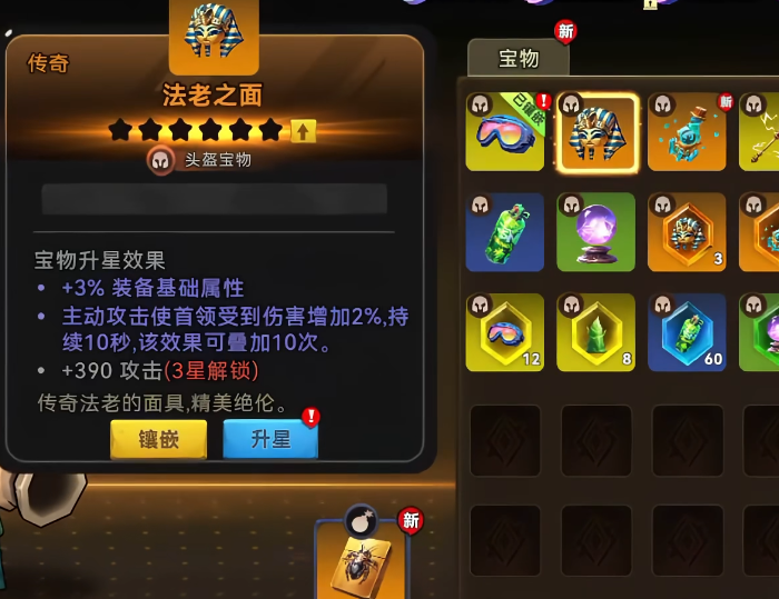 1、头部部位中表现最突出的是【法老面具】,词条应侧重于增加伤害输出,该宝物特别适配火枪流和矛投掷流派,能够大幅提升持续输出能力。