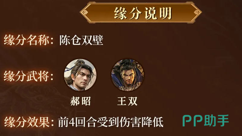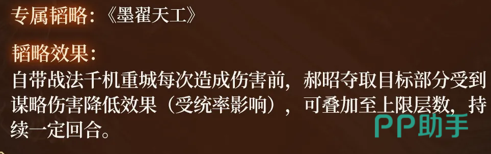 专属缘分系统进一步强化其战略价值:与王双组队时,前4回合我方全体受到的伤害降低15%。其专属韬略可使【千机重城】在发动时,主动削弱敌方目标所受的谋略伤害减免效果,形成攻防闭环。该设计既呼应陈仓之战中郝昭与王双协同守城的历史记载,也凸显其对敌方策略体系的压制能力。
