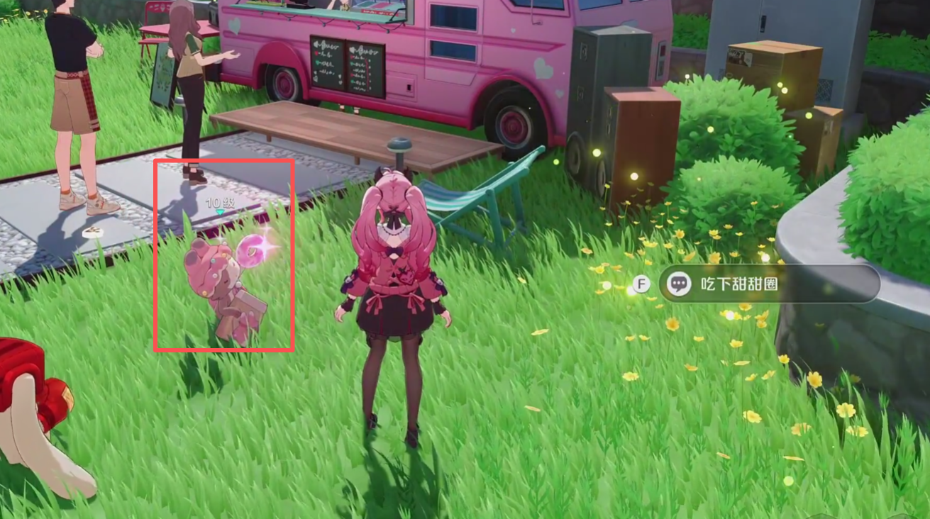 尽管抹娜滋在PVP或高难度副本中的战斗强度相对一般,但在大世界探索环节具有较高的互动价值。玩家可在开放地图中与她互动,尝试食用其提供的甜甜圈,体验趣味事件;同时还能利用她的专属技能“甜苦圈圈”参与解谜任务,解锁隐藏奖励与剧情线索。