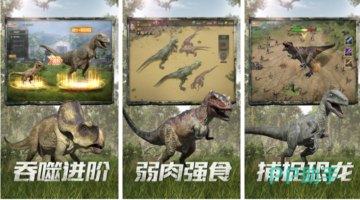 巨兽战场是款拥有吞噬进化和SLG元素的硬派手游,玩家可带领军队穿越白垩纪时期抓捕恐龙,亦可在实验室中对这些恐龙进行强化改装,拥有恐龙战队后你可以尽情挑战其他的敌人,通过操控恐龙互相吞噬亦可实现阶级强化,多样好玩的内容与写实战场背景均为亮点,特殊的视角呈现让大家近距离观察弱肉强食的画面,各位SLG游戏粉丝可尝试这款恐龙主题的军事作品。