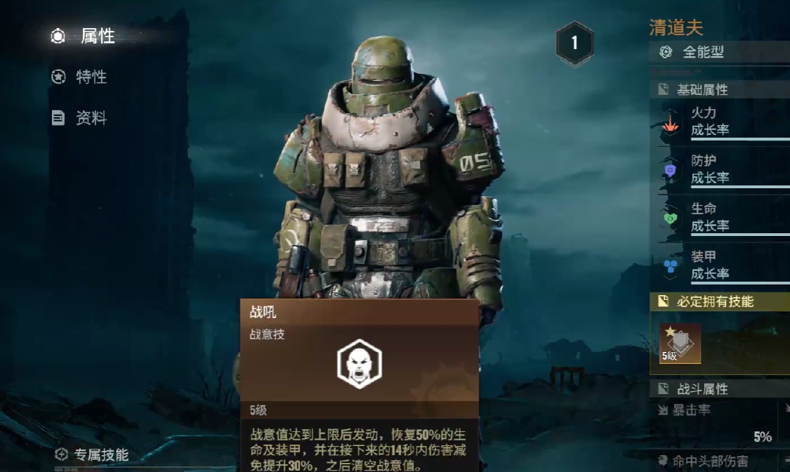 第三个金色伙伴是清道夫,它具备有战意技能战吼,在恢复自身50%装甲数值的同时,还能够提升自己,在游戏当中30%的伤害免疫效率,作为游戏内的全能型坦克,它的整体培养难度也是最低的,不仅适合pvp战斗,在pvp战斗模式内,也有着极强的发挥。