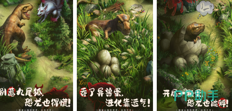 在游戏的山海世界观里,由于不周山倒塌天地的鸿蒙灵气消散在神兽体内。大家将被天神授命去下界收集这些灵气。大家将与这些奇珍异兽们,共同在山海世界里冒险,并且游戏还独创的将各种侏罗纪恐龙,融入了山海世界。还有非常好玩的神兽对战,大家可以召唤出自己的玄武、九尾狐等等神兽来与敌人对决。