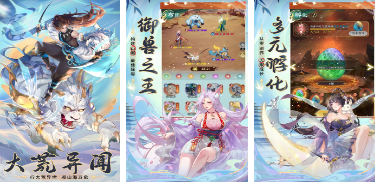 这款手游将山海经元素与挂机玩法相互搭配,并且融入了异兽养成和文字剧情,让大家体验一个最多元的山海经世界。游戏为大家设计了海量的异兽,大家可以通过自己的驯兽能力来让它们臣服。并且游戏里还为大家设置了很多远古时代的秘宝,比如伏羲镜、盘古斧等等,利用这些法宝能让自己的战斗力更上一层楼哦!