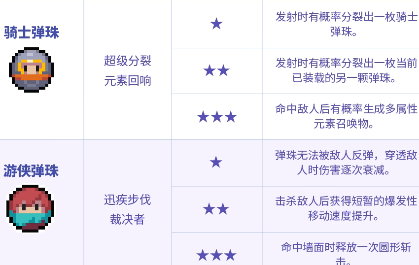 核心玩法融合经典弹球物理逻辑与Roguelike构建逻辑:玩家通过调整发射角度与力度控制弹珠轨迹,撞击敌人并触发连击效果。不同人物弹珠拥有专属技能机制——例如骑士弹珠在发射过程中存在概率分裂为多枚子弹珠;随着星级提升,还可解锁进阶技能,显著增强战术多样性。