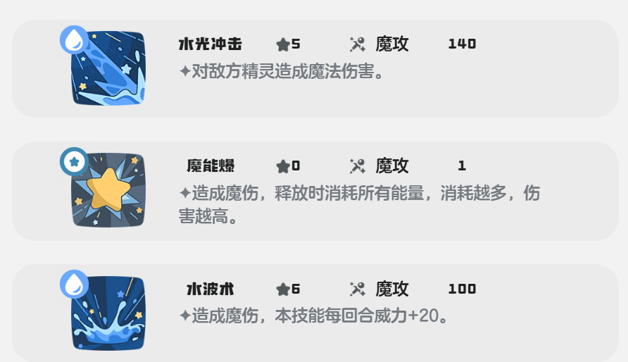水光冲击是里拉鳐的主要攻击技能,因为里拉鳐更偏向于魔法攻击类精灵,为此在使用水光冲击时可以在极少的耗能下给对对手造成高额的伤害。