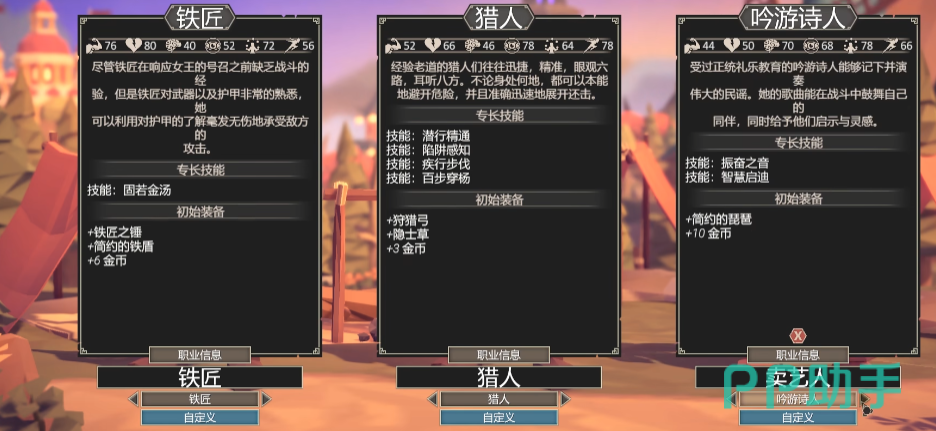 对于新玩家来说,一套易于上手且性能均衡的阵容推荐采用铁匠+猎人+学者/吟游诗人的组合,这套阵容有着低操作门槛,各司其职又相互协作,非常适合熟悉游戏机制的阶段,铁匠作为坚实的前排盾牌,初始装备的重型铠甲赋予他出色的物理防御能力,而淬火打击技能带来的灼烧效果则兼顾了输出与持续伤害,前期优先强化力量属性,解锁破甲一击后,即便是高护甲的敌人也不在话下,猎人凭借敏捷身手掌控战场节奏,短弓的精准射击可直指敌方后排弱点,探索时的追踪技能更是发现隐藏宝藏与规避陷阱的关键,根据所持武器的不同,灵活调整属性加点方向,既能保证输出效率,又能适应多变的战斗环境,若加入吟游诗人,其幸运光环能提升全队的暴击与闪避概率,史诗叙事技能在完美判定时甚至能为队友补充专注值,配合猎人的连击特性,可在单回合内爆发惊人伤害。
