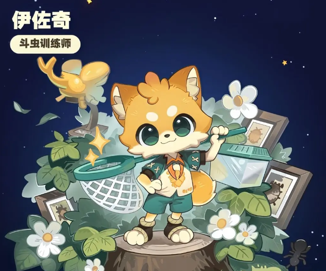 作为一位斗虫训练师,伊佐奇性格阳光、积极向上,面对挑战从不退缩。他对捕捉昆虫有着极大的热情,即便跌倒也会笑着站起来继续前行。他拥有“地脉感知”被动技能,可使稀有矿脉的发现概率提升30%,并且在特殊天象出现时,稀有种的出没几率直接翻倍,是资源探索中的强力助力。