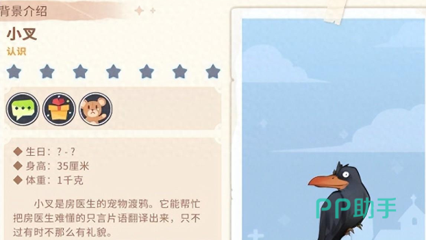 小叉并非普通乌鸦,而是长期驻守于沙石镇中心区域、协助房医生进行医患沟通的特殊伙伴。它会将晦涩的医学术语转译为通俗表达,虽偶带调侃语气,却极大增强了游戏叙事的真实感与趣味性。值得注意的是,其饮食偏好明显偏离现实乌鸦习性——凉拌苜蓿、凉拌仙人掌、水果沙拉等植物类冷食均在其喜爱清单之列,体现出设计者对角色设定的创意化处理。