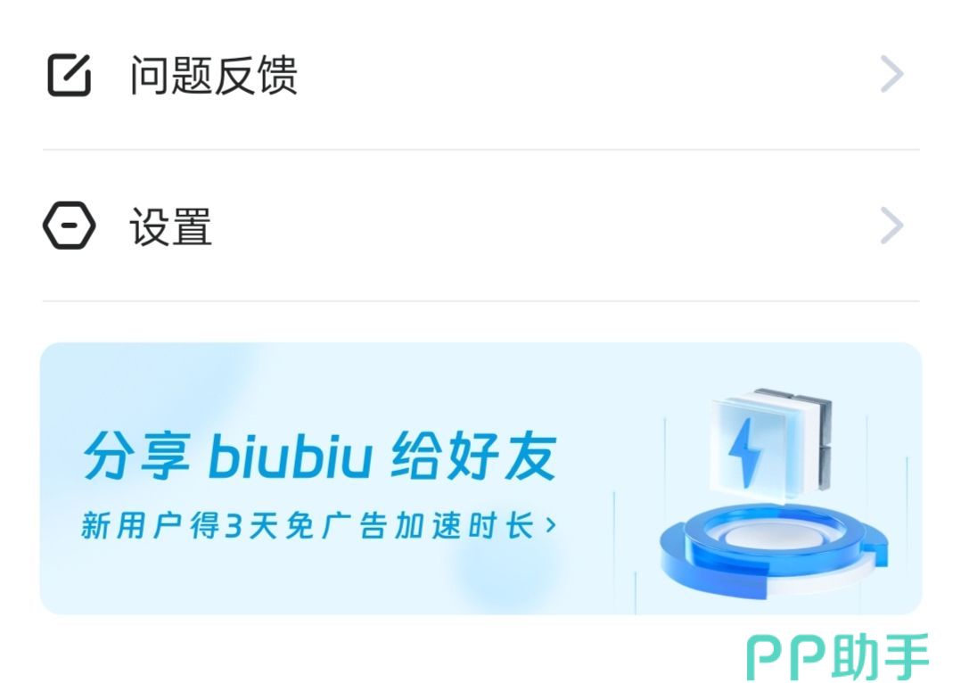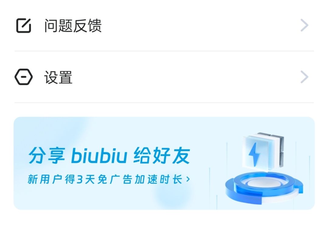 用biubiu还能享受福利呢,我们注册以后就有3天的免广告服务时间呢,这个好福利我们要分享给好友的,一起玩都是流畅状态的。然后等用完了,还有活动能参加呢,来看广告得时长吧,3个视频换1天的使用时长。