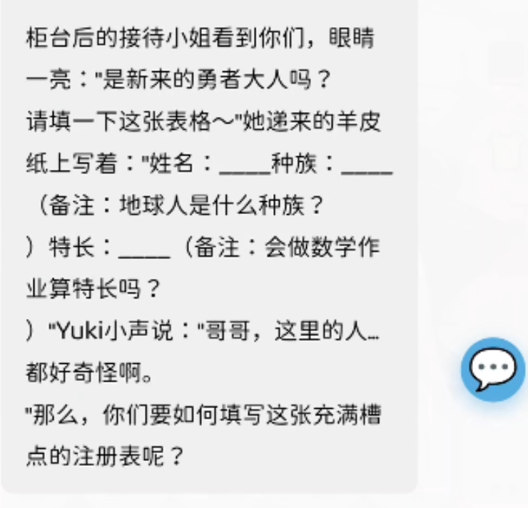 公会申请并非传统意义上的点击确认操作,而是一次深度叙事介入。任务触发后,系统将自动跳转至注册界面,引导玩家填写一份动态问卷。问题涵盖职业倾向、偏好战斗风格、虚构冒险履历等开放式条目。所有回答无需符合现实逻辑,只需贴合角色设定并保持内在一致性。后台由大语言模型实时解析输入内容,据此生成差异化剧情反馈与审核结果,确保每位玩家的交互路径具备独特性与不可复现性。