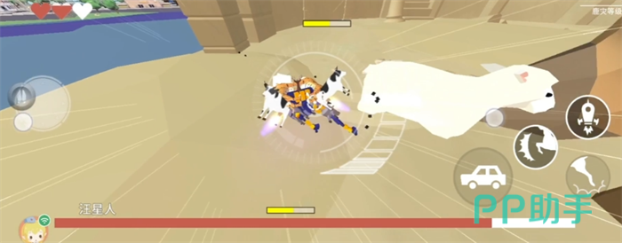 玩家需要重复上述步骤,但要注意汪星人会伸手攻击,这时候需要灵活躲避。一旦被汪星人的手臂击中,玩家可能会陷入不利的局面。当汪星人的两只手都被卸下后,它的攻击力会大幅下降,玩家可以趁机攻击羊,以减少汪星人的动力。