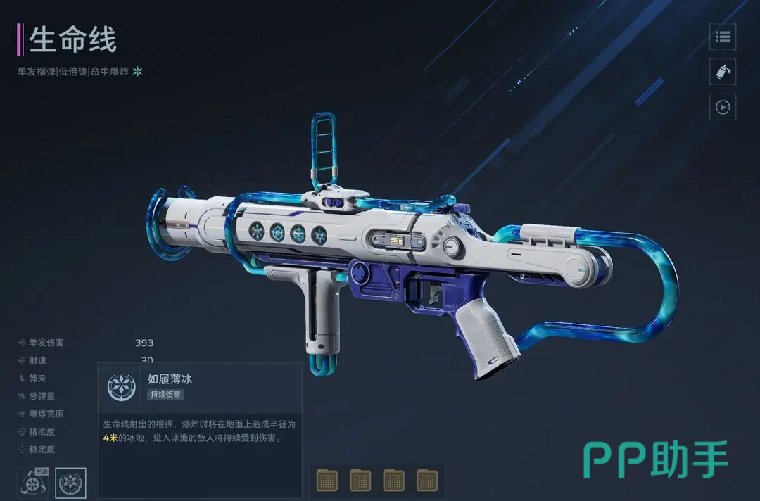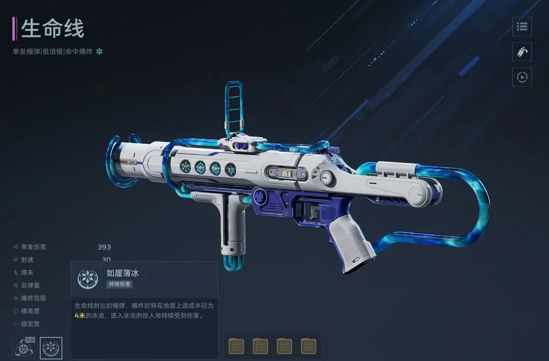 副武器方面,推荐选择“生命线”。其被动技能“如履薄冰”支持发射榴弹,落地后生成半径4米的持续冰霜区域,对范围内敌人造成周期性伤害。