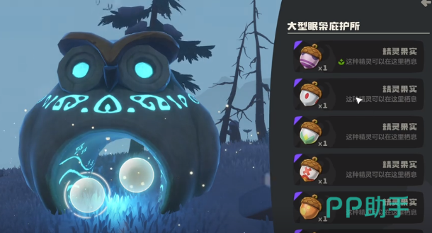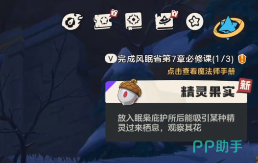 这一个果实所在的位置就在左上角,这里就是一个雪山位置。玩家只需要和蓝色的树枝去完成互动,马上就可以获取。不过还有一些要求,例如要求玩家捕捉60个精灵图鉴。