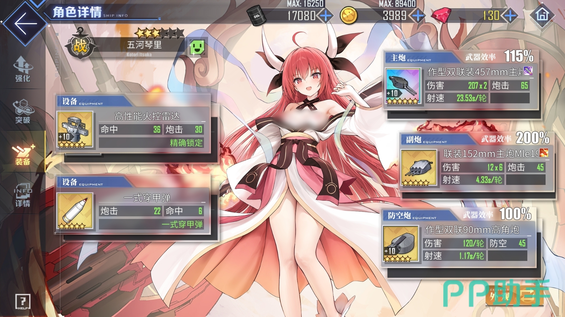 专属兵装“灼烂歼鬼”还附带被动回复效果:一旦五河琴里的耐久值低于70%,便会启动自动回血机制,每5秒恢复2%的生命值,进一步巩固其战场存活率。在装备配置上,她与常规金战列相似度较高——优先使用彩炮,若无则推荐欧根炮、弗兰炮或紫MK6作为替代;防空炮建议选用STAAG型号,副炮可搭配通用轻巡主炮。设备方面,若无需调速,推荐金火控搭配白弹以最大化输出节奏;若有调速需求,则可通过黑弹或弹链等配件进行精准调整。