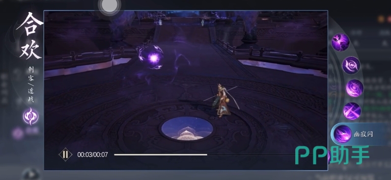 觅相思拥有8秒冷却,可在前方区域召唤一枚持续旋转的刃轮,对触及的敌人造成持续伤害并附加减速效果。若在刃轮存在期间(持续3秒)再次施放该技能,角色将高速冲向刃轮位置,沿途斩击敌人并额外获得一层刃标记。这一机制赋予了合欢远程压制与近身突进的双重选择,结合隐身特性,常能在敌人未察觉的情况下完成致命打击。