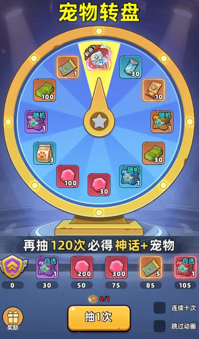 宠物转盘为限时开放活动,其顶级奖励为“极光龙”,定位为神话+级别宠物。参与需消耗契约召唤券,该转盘设有明确保底机制:约120抽必得1只神话+宠物。配套礼包共设10档(编号0至328),部分档位提供免费召唤券。推荐资源规划路径为:首日购入68档礼包,次日追加购买同档礼包,即可精准凑足保底所需抽卡次数。此外,转盘存在特殊重置机制——抽取特定神秘道具后,可清零当前保底计数,大幅提升高阶产出概率,实际收益高度依赖策略与随机性平衡。