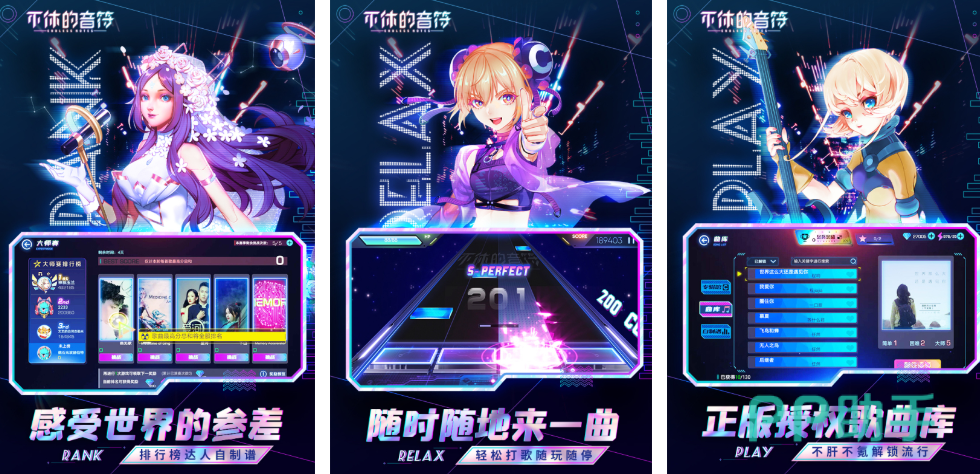 不休的音符这款游戏属于赛博朋克风格类型的游戏,玩家在游戏当中可以享受音乐,也能够让自己的专注力得到提高。毕竟这款游戏会考验玩家的手速跟反应能力。虽然玩家只需要通过四键操作来打歌,并且随着游戏不断深入之后,玩家还能够解锁很多的潮流歌曲。要是玩家想要是排名的话也可以参加竞技排名赛。
