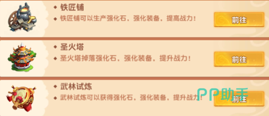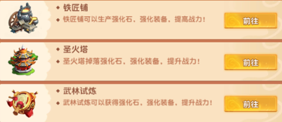 1.铁匠铺:制造强化石,用于提升装备基础属性,有效提高角色战力