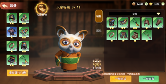 3.装备升级:每次强化将随机提升一项基础属性(生命、攻击、防御),所有英雄共享该属性加成效果