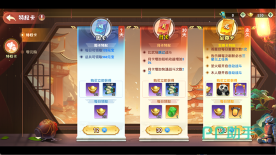 3.购买至尊卡:永久提升角色全属性2%,适用于长期战力积累