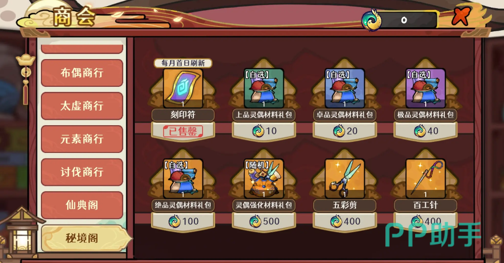 随着层数深入,奖励丰度呈阶梯式跃升。获取蓬莱玉后,玩家可在蓬莱商店兑换刻印符——该道具在秘境爬塔及主线冒险任务中具有不可替代的战略价值。同时,强烈建议优先储备灵偶强化所需材料:每只橙色品质灵偶支持三次强化,剪刀、针、纽扣为三大基础素材,每次使用将随机生成一条属性词条,直接影响战斗辅助效能。