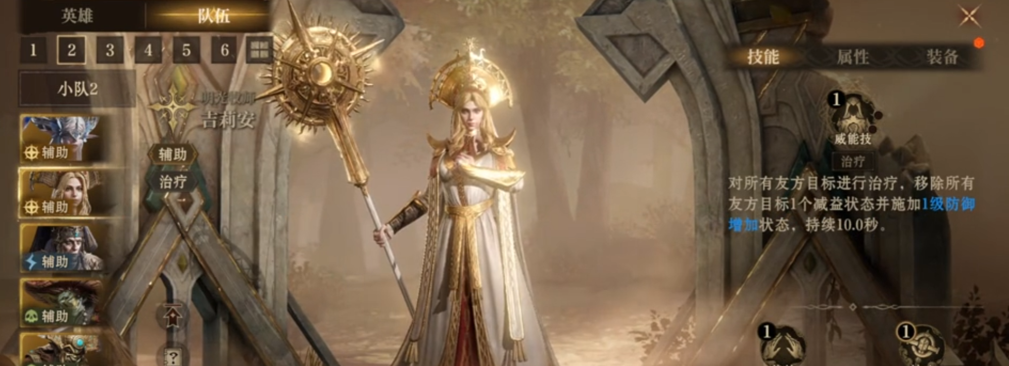 最后一个治疗角色就是吉莉安,这个角色在使用自己的治疗技能时,如果生命值低于50%的队友,是可以为他进行持续性的回血来提高他的生存能力,针对于生命值较低的敌人,提供高额的伤害,后续在使用时比较适合高难度的副本,可以很好的提升队伍的容错率。