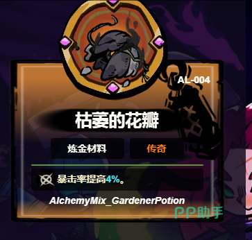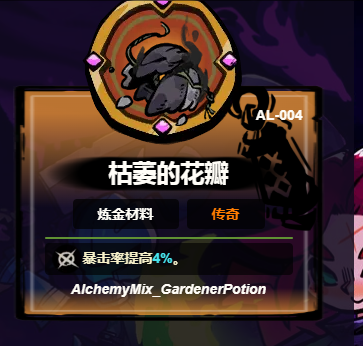 脆弱的枯萎的花瓣:外观朴素却具备稳定增益效果,装备后恒定提升4%暴击率。该加成无触发条件限制,全程生效,尤其适配高攻速武器流派,可在对抗重甲骑士等高减伤目标时,通过高频暴击有效穿透防御阈值,降低容错压力。
