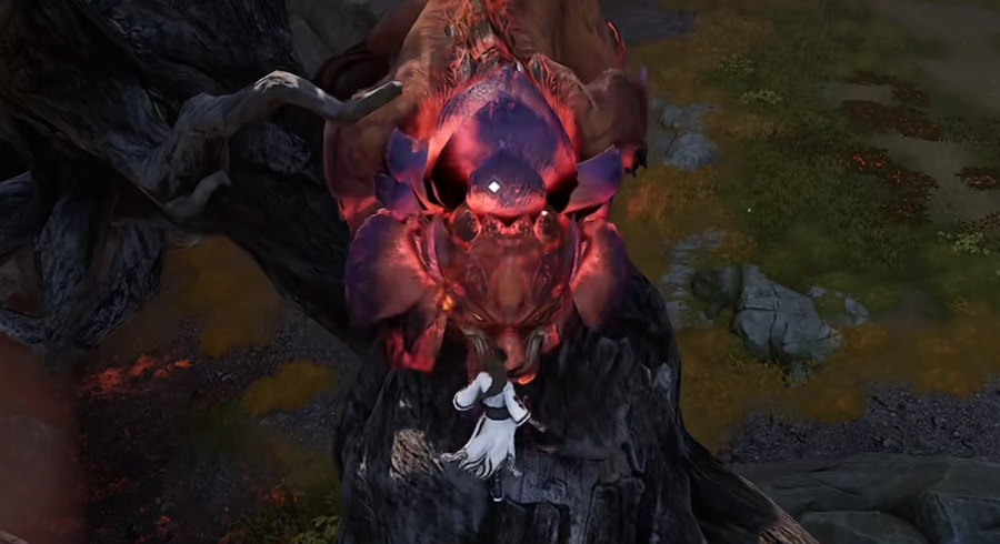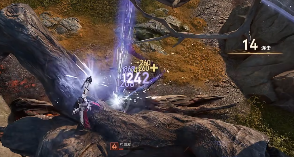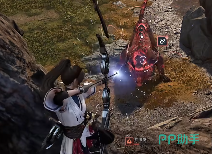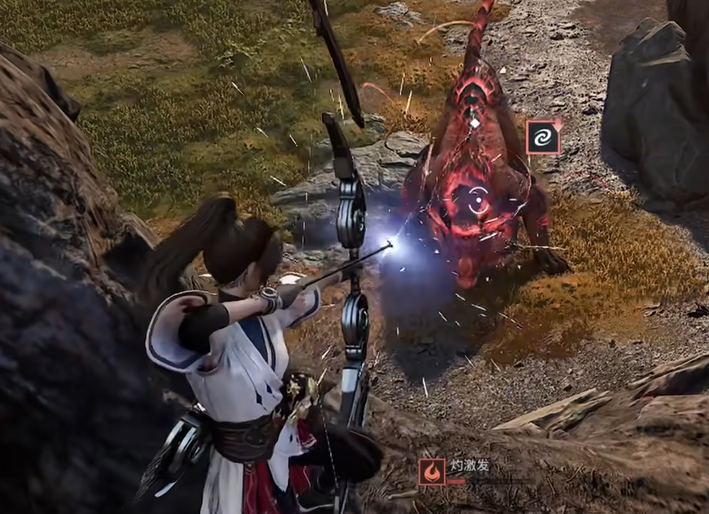 灼绒的第一阶段(满血至70%)以近战压制为主。其扇形横扫攻击拥有明显抬手动作与较长判定范围,正向站立几乎无法规避;推荐在它双臂扬起瞬间向左或右横向位移,切忌提前或滞后闪避。此外,它会发动一次高速直线突进,位移路径笔直且不可阻挡,建议提前卡位至场景岩柱后方进行规避,避免正面硬抗——该段伤害可观,且常附带短暂僵直效果。