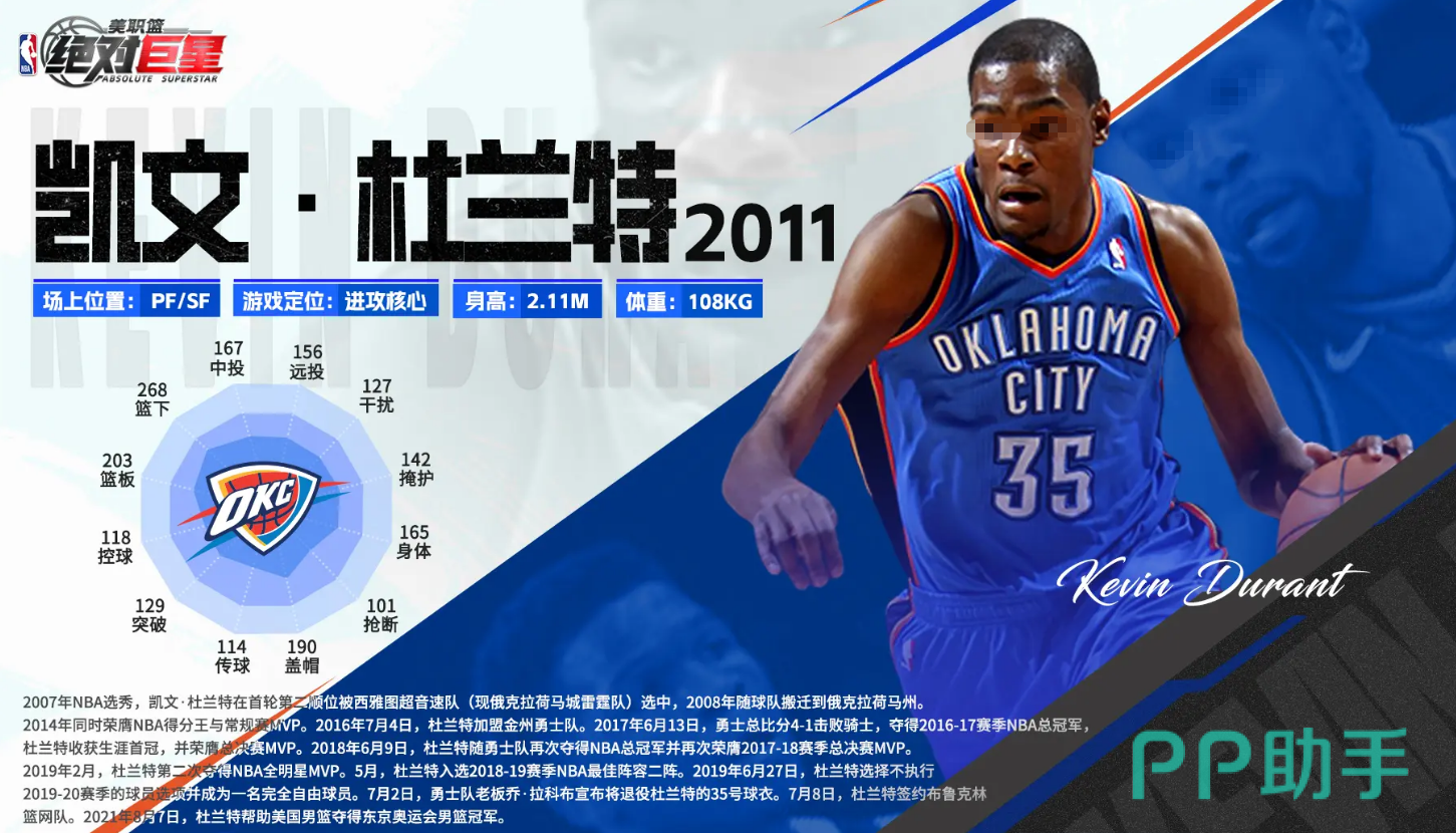 从技能机制来看,杜兰特的表现极为亮眼。“一击中的”触发后,下一次出手将自动转化为三分投篮,并且完全无视防守干扰,完美还原现实中“死神”杜兰特冷血杀手的形象。这一特性使得他在关键时刻具备极强的终结能力。