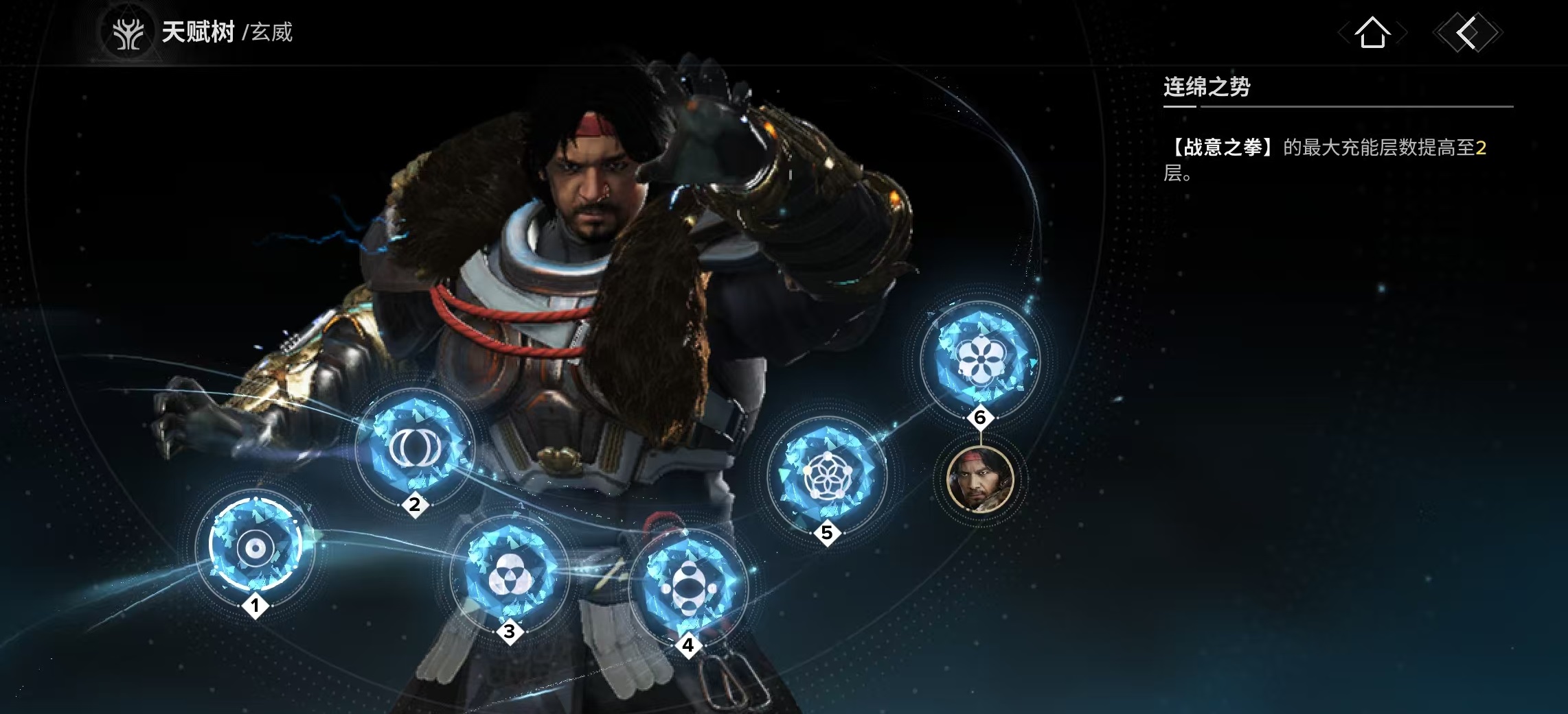 玄威的核心被动为“圣兽余威”,每次使用技能命中目标时都会叠加一层效果,最多可叠加三层,每层持续10秒。当角色阵亡时,会触发一次基于层数的范围爆炸伤害,对周围敌人造成打击。这一机制赋予了他在团战收尾阶段额外的战略意义。在主动技能方面,“神威缚索”可通过释放电弧将敌人拉至身前,实现稳定先手控制,便于衔接后续连招或配合队友集火。开启大招后,玄威的爪击附带击飞效果,而“战意之拳”蓄力砸地不仅造成高额伤害,还会产生冲击波,具备优秀的群体压制能力,在突破敌方防线时尤为突出。