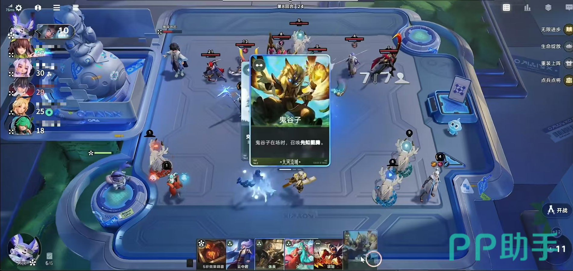 运营策略强调节奏把控:前期聚焦虞姬、鬼谷子、闹闹三人组快速成型,优先存能升至5级,再视大河卡牌到手频率决定是否主动连败。切忌盲目搜卡——闹闹的阵营锁定机制确保中后期质量无忧,且其强度峰值出现在6级阶段。3级时可精准卡点使用“排队泡泡”刷牌,在保障能量储备的同时提升获取效率;1级阶段则完全不建议释放该技能。