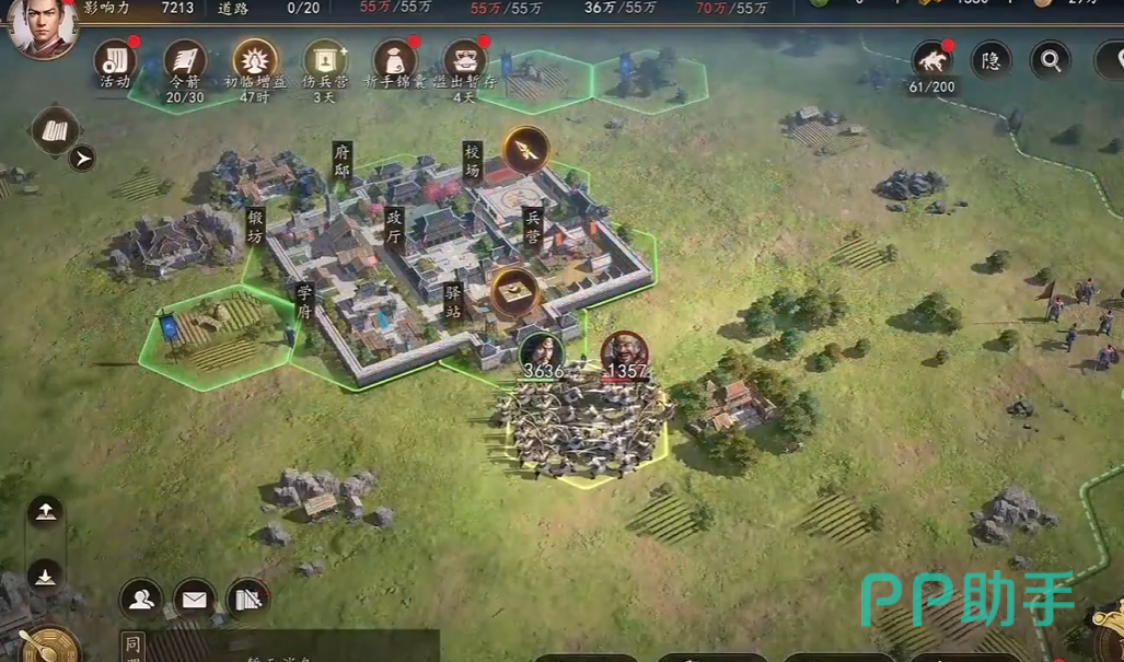 玩家在游戏中扮演一方诸侯,既可调度麾下武将组成战术小队出征,也可通过升级主公等级、研习主动/被动技能、装配专属装备等方式强化自身作战能力。每场战斗最多可编入三名武将协同作战。推荐新手期采用“前排坦+中排输出+后排治疗”的经典阵型;待中期武将星级提升、属性成型后,可逐步切换为双输出+单辅助的高爆发配置,以适配更高难度挑战。