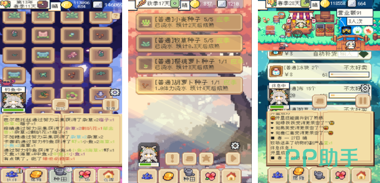 《种田高手》这款游戏虽然是像素风格,但具有精美的画面和舒适的音效,可以让大家沉浸其中,体验乡村生活的乐趣。游戏主要玩法就是种田和养成小动物,日常无聊的时候还可以与村民们互动,了解村庄之外发生的事。据统计,目前为止共有70多种作物和40多种动物可以养殖!支持离线挂机模式的同时,还支持自动培养,保证资源不被浪费。