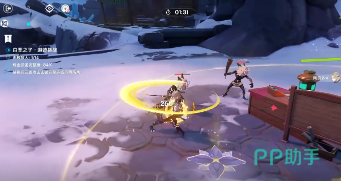 关卡起始阶段不涉及即时战斗,需优先完成环境探索与机关解谜。沿路径指引前进,抵达断桥区域后触发首个关键机关——需在断裂桥面正上方精准释放阿贝多的元素战技,借助技能产生的浮空平台跃升至对岸。该操作对释放位置敏感度较高,务必确保技能落点完全覆盖桥面区域。通过断桥后将进入阵法防御区,此处存在一个易被忽略但至关重要的准备动作:务必在进入战斗前将角色体力恢复至满值,否则后续跳跃与闪避将受限,影响解谜连贯性与战斗容错率。