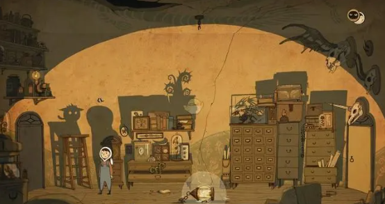 玩家可以直接操控小女孩,让小女孩把有藤蔓的抽屉直接关闭,但一定要注意,随时都有可能会出现的乌鸦。应该操控小女孩,把那些有羽毛的抽屉全部关闭,让小女孩走到对应的位置,最后让小怪兽出现在边上的阴影中。在经过好几次的反反复复操作之后,小怪兽就能顺利的来到右侧门上,这就意味着已经顺利的通过第8章。