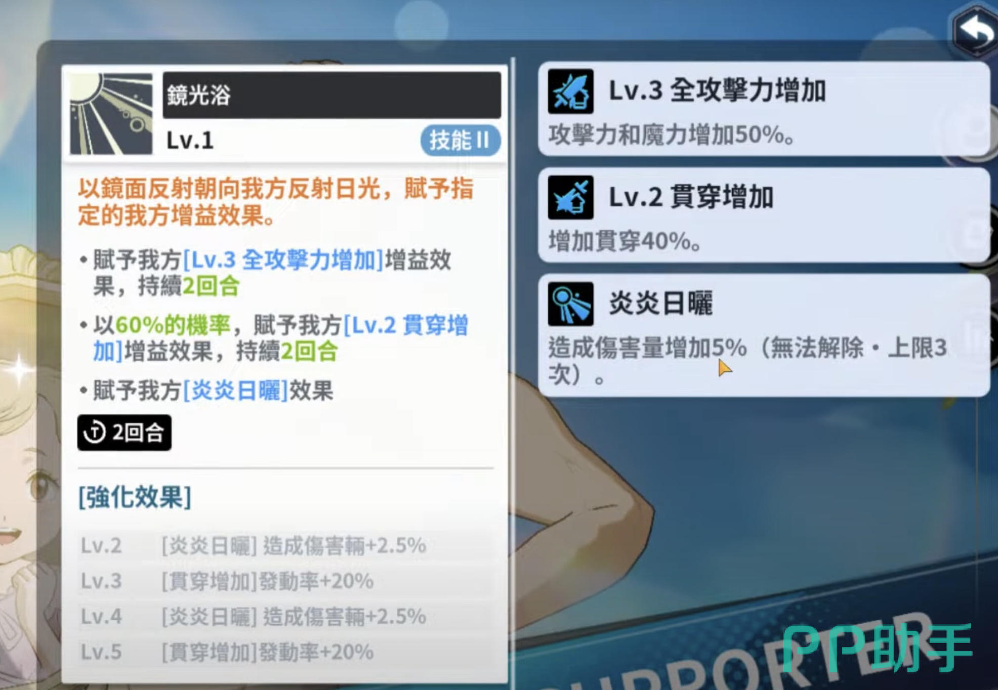 从技能机制来看,葛修的设计充分围绕团队协作展开。“米勒的太阳”不仅能对单一敌人造成可观伤害,还能为生命值高于80%的队友附加“武器强化”状态,有效提升主力输出的爆发效率,加快整体战斗节奏。而另一个核心技能“米勒的鞣制”则更为关键,不仅可为单个单位提供全攻击力和贯穿力加成,还能让全体友军获得可叠加三层的“强烈阳光”增益,显著增强全队持续作战能力。