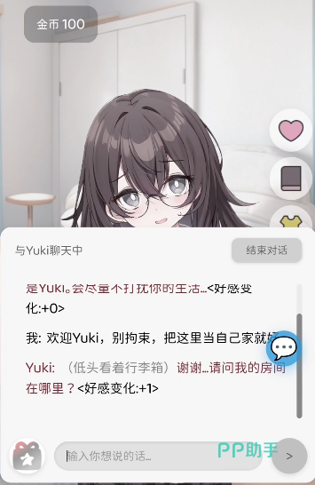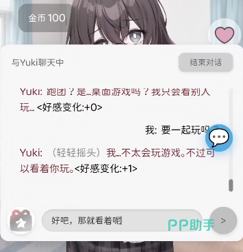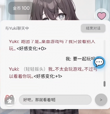 3、“一起玩”随机事件模块:点击主界面【一起玩】入口后,系统基于玩家历史行为数据动态生成当日互动选项。可选内容包括双人协作小游戏、虚拟逛街购物(支持实时选购服饰/饰品并影响Yuki外观)、周末野餐等多元场景。每次开启均呈现差异化内容组合,确保重复游玩的新鲜感与策略性。