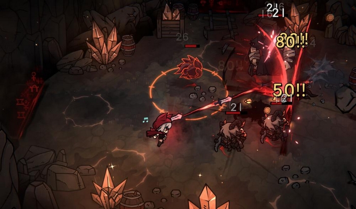 游戏采用手绘感强烈的俯视角卡通渲染风格,融合哥特式视觉元素。战斗系统强调技能释放时机、走位闪避与被动词条联动,部分被动效果甚至能重构技能形态与攻击特效。每获得新技能后,角色升级时均提供两种差异化强化路径,支持玩家按战术偏好定制成长方向。